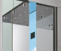 di servizio sempre in cristallo a filo con le pareti, caratterizza questa cabina per i suoi particolari che non lasciano niente al caso. La particolarità del tetto a sbalzo fa si che le pareti stesse facciano da parapetto, ideale per gli impianti panoramici.